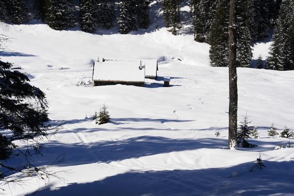 ... an deren Hütten die vielbegangene "Schitouren-Autobahn" auf den Leobner vorbeiführt.
