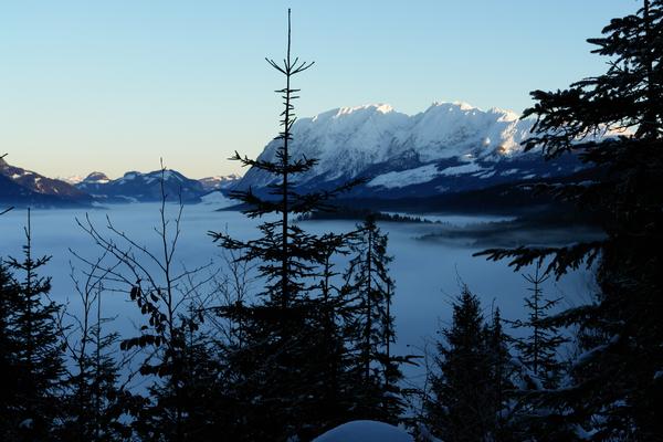 Doch allmählich zieht sich die Sonne auch von den Bergen zurück ...