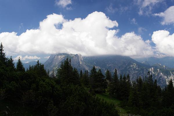 Kaiserschild und Hochkogel (Wandertour am 27.07.2008) liegen noch unter einer Wolkenhaube.
