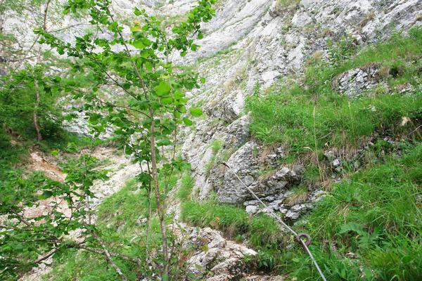 An einigen exponierteren Stellen bieten Drahtseile Unterstützung.