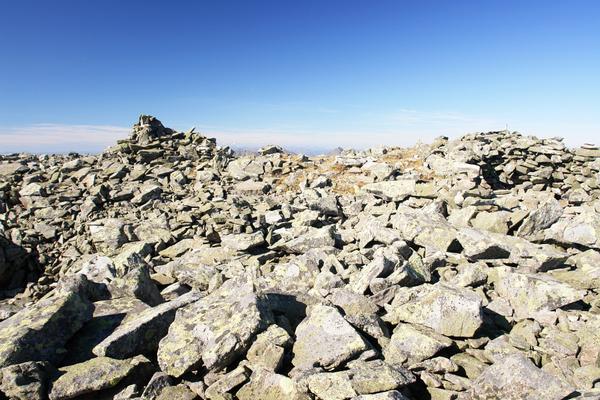 Zum Schutz vor dem Wind zogen wir uns hinter einem der am Gipfelplateau errichteten Steinwälle zurück.