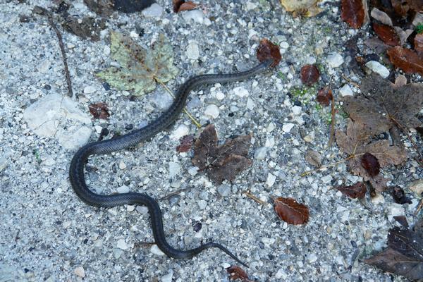 ... dass ich ihr mit dem Tourenstock etwas auf die Sprünge helfen will. Widerwillig und lethargisch verlässt sie den Forstweg.