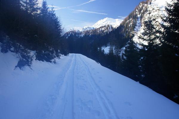 Bei -5°C startete ich im hintersten Winkel von Donnersbachwald bei der Meng-Brücke. Ich folge der Forststraße östlich vom Ebenbachgraben Richtung Süden.