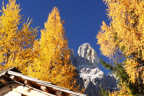 Große Bischofsmütze mit leuchtend gelbem Lärchenrahmen.