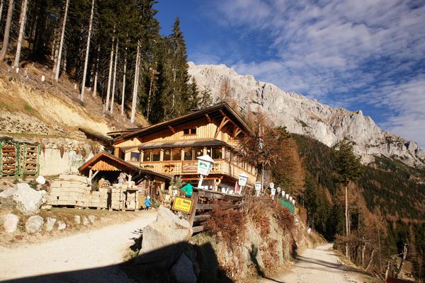 ... hinab zum gut besuchten Ghf. Dachsteinhaus und zurück zu unserem Ausgangspunkt beim nahe gelegenen Ghf. Edelbrunn.