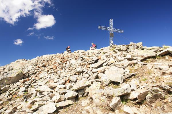 Noch ein kurzer Aufschwung und wir stehen bzw. sitzen beim Gipfelkreuz am Greifenberg.