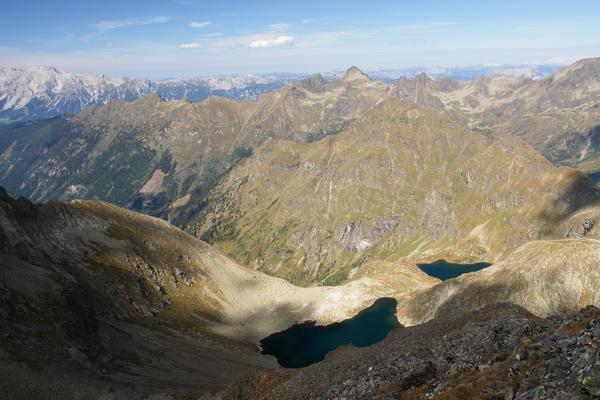 Unter uns überblicken wir noch einmal eine Reihe von Seen im Klafferkessel.