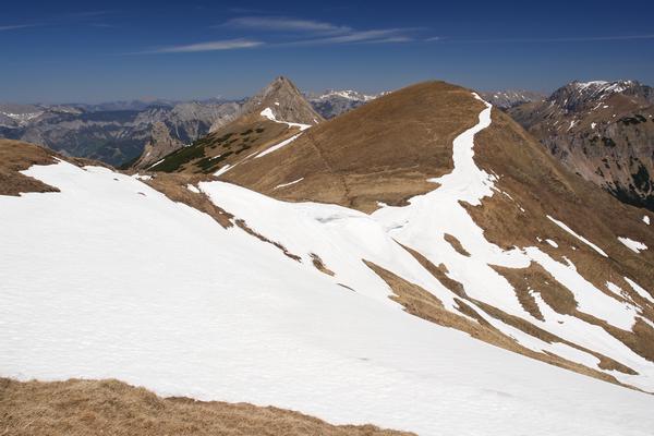 Vom Wildfeld führt die Route zum unscheinbaren, nahe gelegenen Speikkogel (rechts) ...