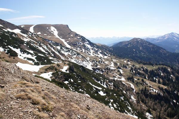 Blick zurück zum Wildfeld (links) und Kragelschinken (rechts).
