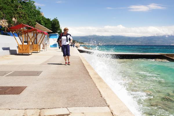 Küstenwanderung auf der Insel Krk in Kroatien: Strandspaziergang in Baska vom Campingplatz Zablace zum kleinen Hafen und wieder zurück