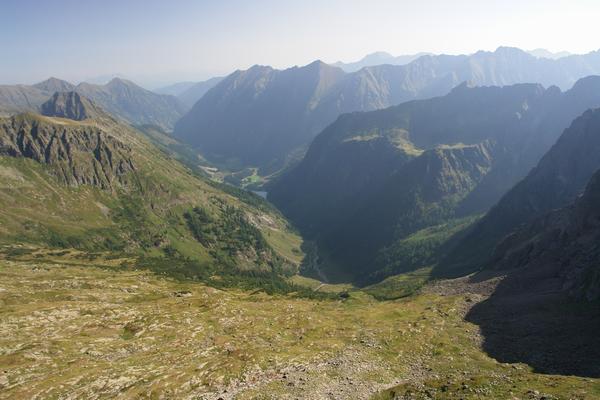 Tiefblick zur Putzentalalm und über den Schwarzensee hinaus Richtung Breitlahn, wo ich heute morgen gestartet bin.