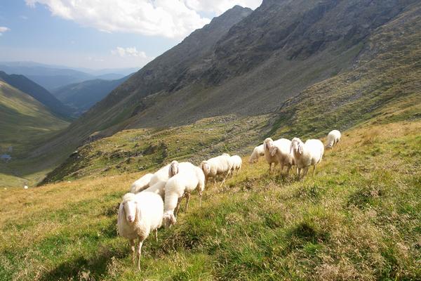 ... in das von neugierigen und fast etwas aufdringlichen Schafen belagerte ...