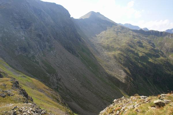 Vom Gipfel kann ich gut den Aufstiegsweg auf das Schöneck einsehen, den wir am 17.08.2006 gewählt hatten.