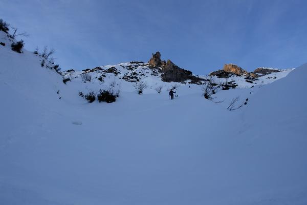 Das aus der Ferne so steil und gefährlich wirkende Gelände erwies sich dann beim Abstieg als einigermaßen gut begehbar. Steilpassagen werden immer wieder von flacheren Abschnitten unterbrochen.