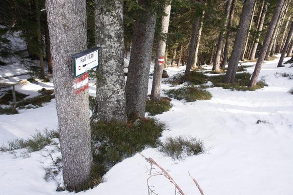 Bei einer Höhe von 1.300 Metern treffen wir auf den markierten Sommerweg von Hall bei Admont ...