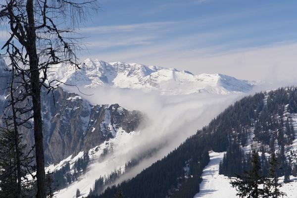 ... wie beim Arlingsattel. Im Hintergrund die schneebedeckten Gipfel der Warscheneckgruppe.