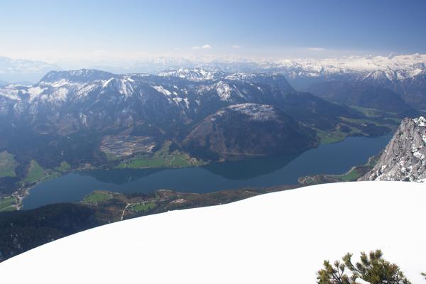 Famos präsentiert sich der Tiefblick vom Gipfel zum Grundlsee.