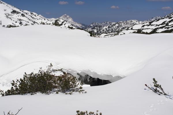 ... ehe meine Richtung in einem weiten Bogen von Norden nach Osten dreht. An so mancher überwechteten Doline vorbei ...