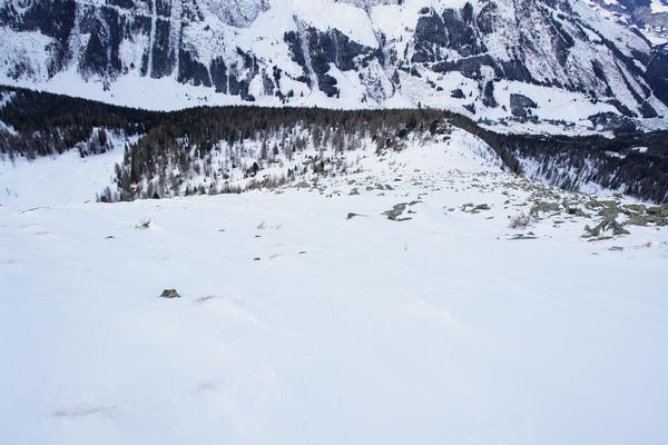 Welch ein Unterschied zum mühevollen Aufstieg mit den schweren Tourenschischuhen. Flugs bin ich wieder unten beim Schidepot ...