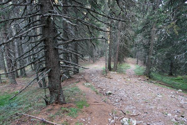 Am bereits vom Anstieg am frühen Morgen bekannten Wege geht es zurück zum Ausgangspunkt, wo im Umfeld der Unteren Bodenhütte mit schweren Geräten eifrig an Ausbesserungen der Forststraße gearbeitet wird.