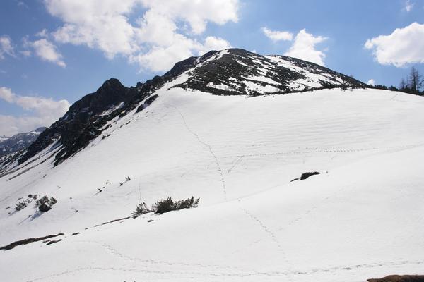 ... wieder zurück zur Hafeichtscharte aufzusteigen, von wo wir heute das Spazeck in Angriff genommen hatten.