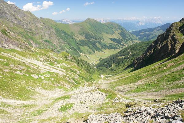 Tiefblick auf die andere Seite über die Langschneerinne ins Sattental.