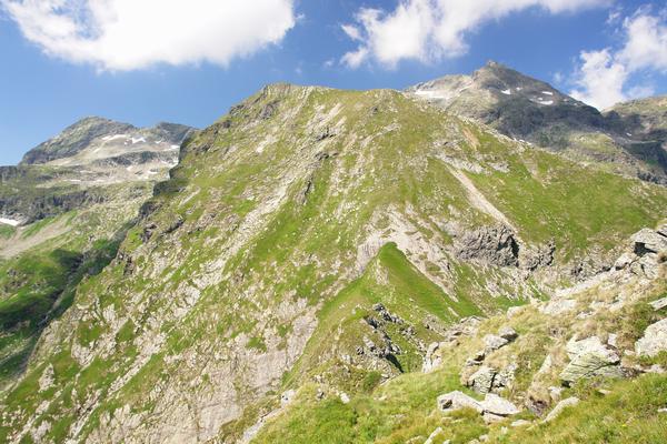 Blick zurück über die Abstiegsroute über die Steilflanke vom Stierkarkopf.