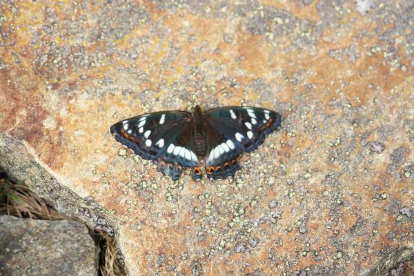 Neben unzähligen Fliegen und Mücken leistet mir auch dieser Schmetterling Gesellschaft am Gipfel.