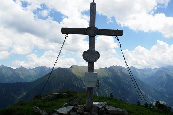 Beim Gipfelkreuz am Schusterstuhl. Leider werden die Wolken nun immer häufiger.