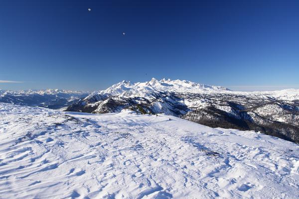 Danach folgt das auf Grund seiner leichten Erreichbarkeit aus dem Schigebiet wild zerspurte und auch vom Wind gezeichnete Plateau.