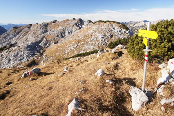 Beim Abstieg entscheide ich mich für die kurze Gipfelrunde im Karstgestein.