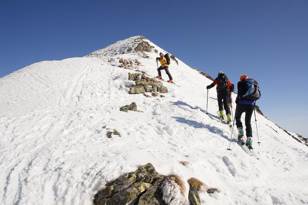 ... und zuletzt mit über 40 Grad auch sehr steil geht es aufwärts. Während andere Schitourengeher bereits weiter unten ein Schidepot einrichteten und den letzten Abschnitt zu Fuß bewältigten, kostete das Moasl nur ein verständnisloses Kopfschütteln: "Wos war hiaz des - wos hätt des für'n Sinn" meinte er angesichts der ausgesetzten 45-Grad-Passage. "Do fohr ma dann guat owi". |