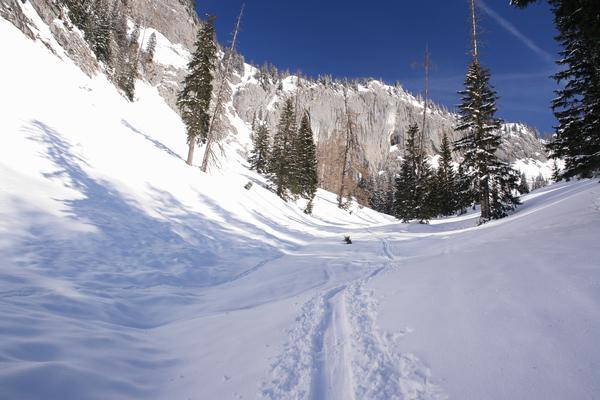 Grundlsee-Gößl / Schachen / Parkplatz Pühringerhütte - Vordernbachalm - Bei den Liagern - Elmmoos - Sandweide - Elm - Abfahrt entlang der Aufstiegsroute