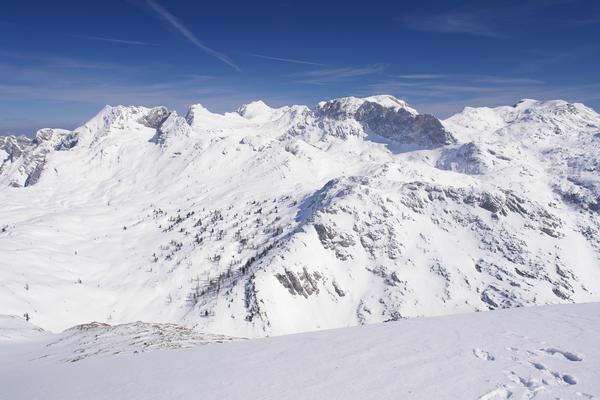 Eine Reihe eindrucksvoller Berggestalten im Gebiet zwischen Rotgschirr, Feuertalberg und Großen Priel.