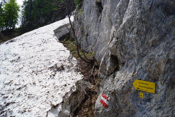 ... über das Schneefeld bergwärts.