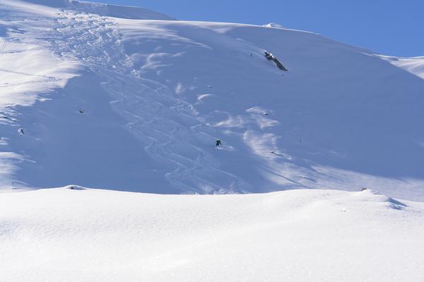 Als wir uns dem Schlußstück nähern, fahren gerade einige Schifahrer herab.
