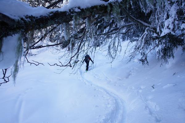 Die satte, weiche Pulverauflage erlaubt uns trotz der zunehmenden Steilheit ein angenehmes Aufsteigen und wird uns im Gegensatz zu meiner Schitour auf den Keeskogel vor einigen Jahren auch eine gemütliche Abfahrt bescheren.