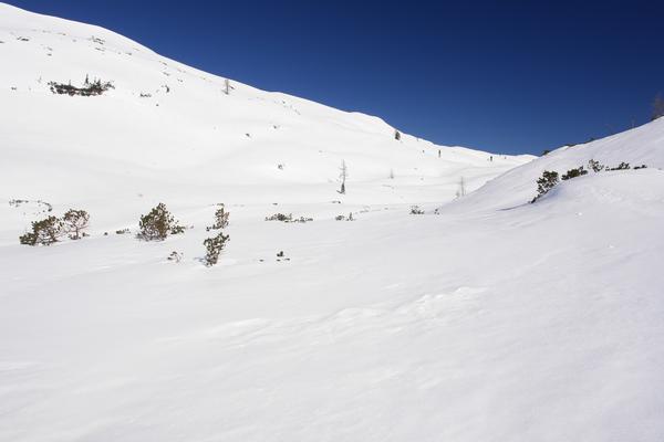 Meist unschwierig, nur eine kurze Steilstufe stellt eine kleinere Herausforderung dar. Die begrenzenden Steilhänge von Elm und Hetzkogel werden aber auf jeden Fall im kritischen Auge behalten.