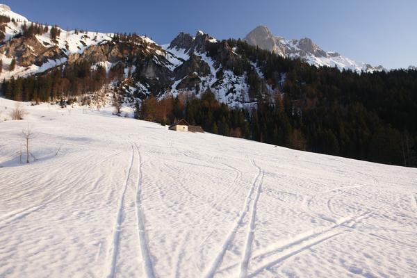 Zahlreiche Schispuren zeugen von der Beliebtheit dieser Schitour.