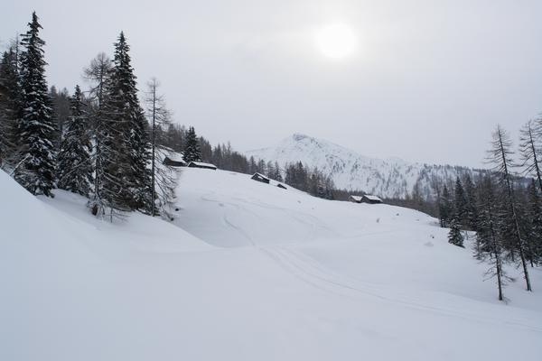 Die Hütten der Schladminger Alm kommen ins Blickfeld