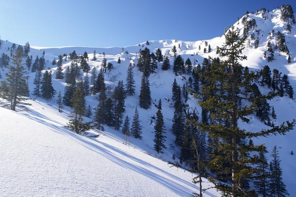 Eine kurze, etwas steilere Geländestufe gehen wir von links an.